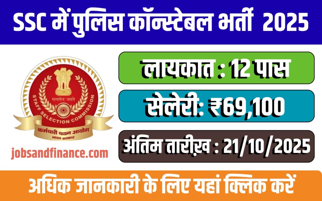 Meta Description: SSC Police Constable Recruitment 2025 notification is out for thousands of vacancies. Check eligibility, important dates, selection process, and application details here.